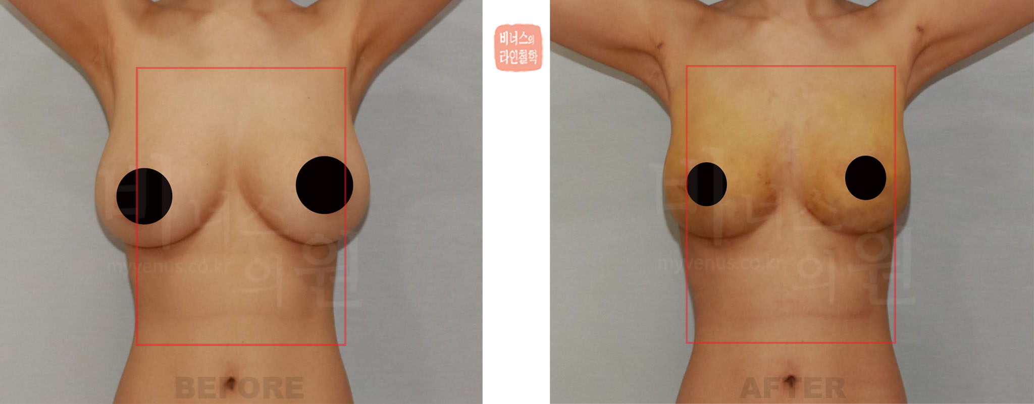 이 사진은 비너스의원에서 가슴축소 지방흡입 수술을 받은 동일인의 수술 전·후 비교 사진입니다.