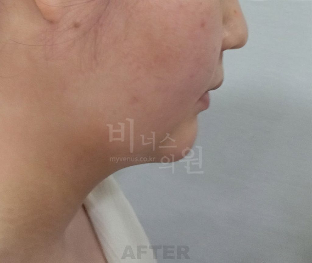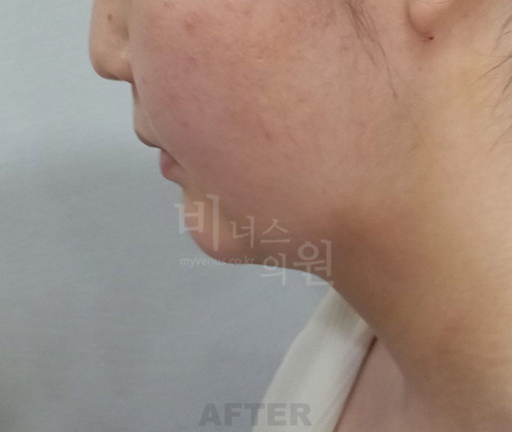 좌측면 사진에서 확인되는 변화: 볼 하부와 턱 아래에 집중되었던 볼륨이 완화되면서 얼굴 하부 폭이 정리되었습니다. 얼굴 중심선이 보다 또렷해지고, 무거워 보이던 하관 인상이 한층 가볍고 단정하게 보입니다. 전반적인 윤곽이 아래로 퍼져 보이던 느낌이 줄어들어, 안정적인 얼굴 비율이 강조됩니다.