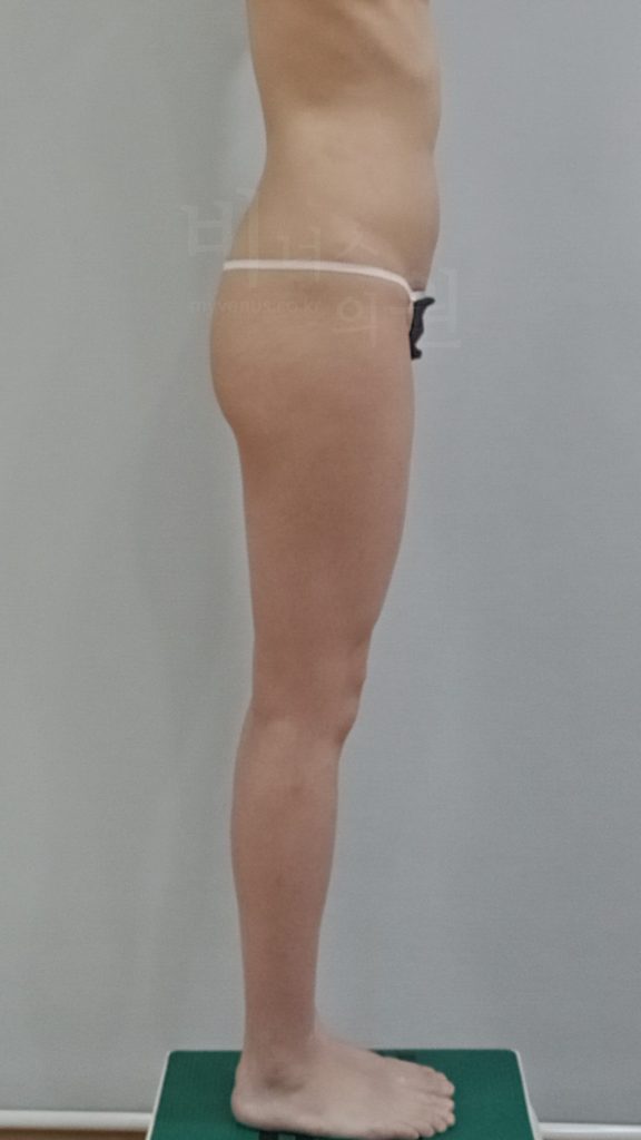 후면에서 엉덩이 하방과 허벅지 상부의 연결 부위가 정리되면서 힙 윤곽이 보다 뚜렷하게 드러납니다. 엉덩이 전체 볼륨의 균형이 개선되어 상·하체 라인이 더 정돈된 인상을 줍니다.
