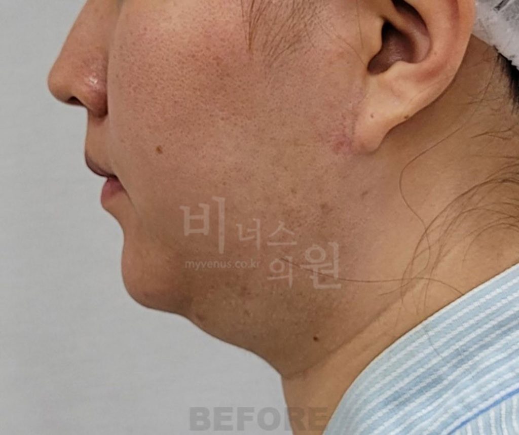 이중턱 지방흡입 1주 경과 전후사진 — 왼측면 비교