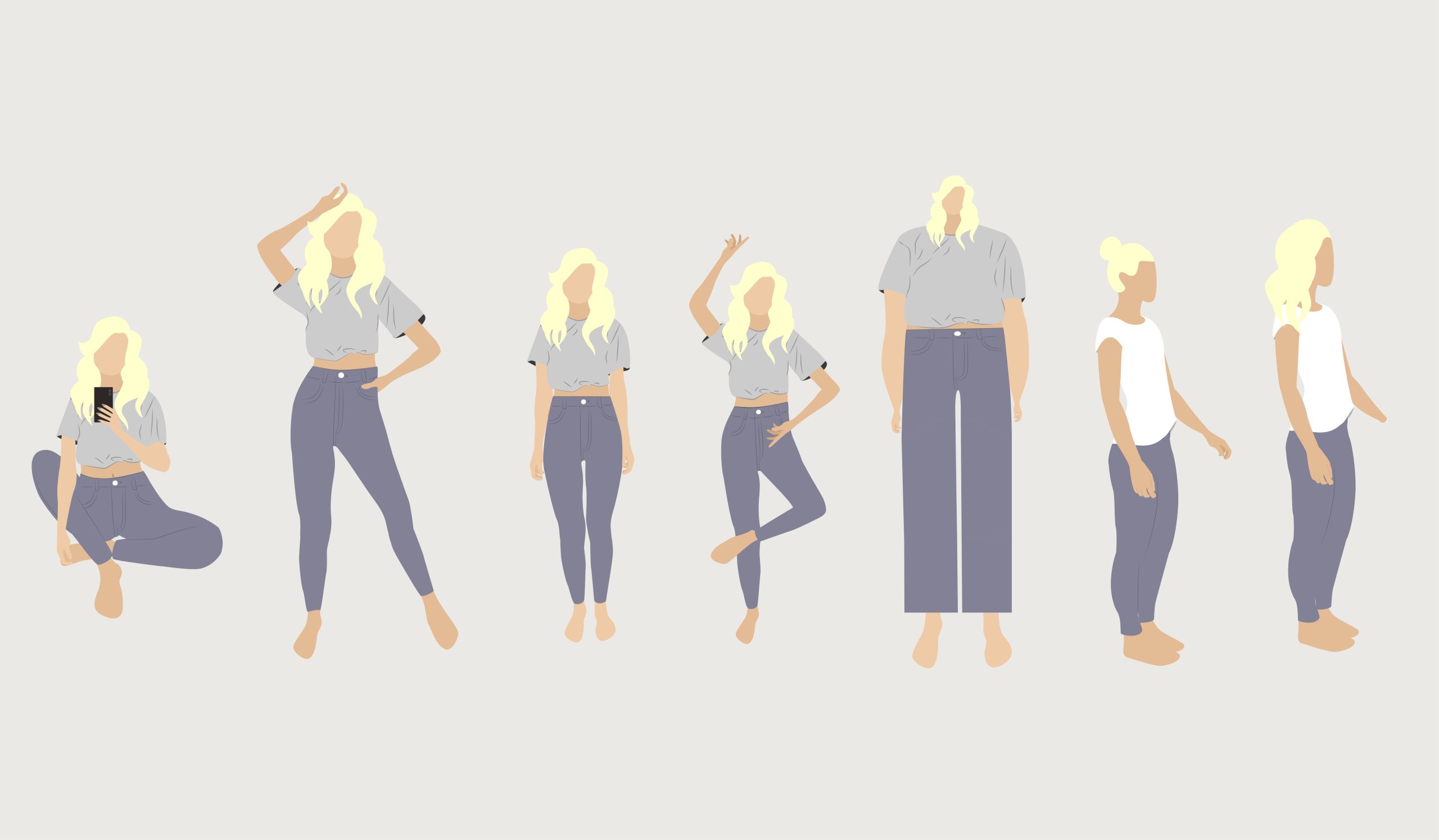 정면(차렷) — 팔 외곽 라인과 겨드랑이 연결부 변화